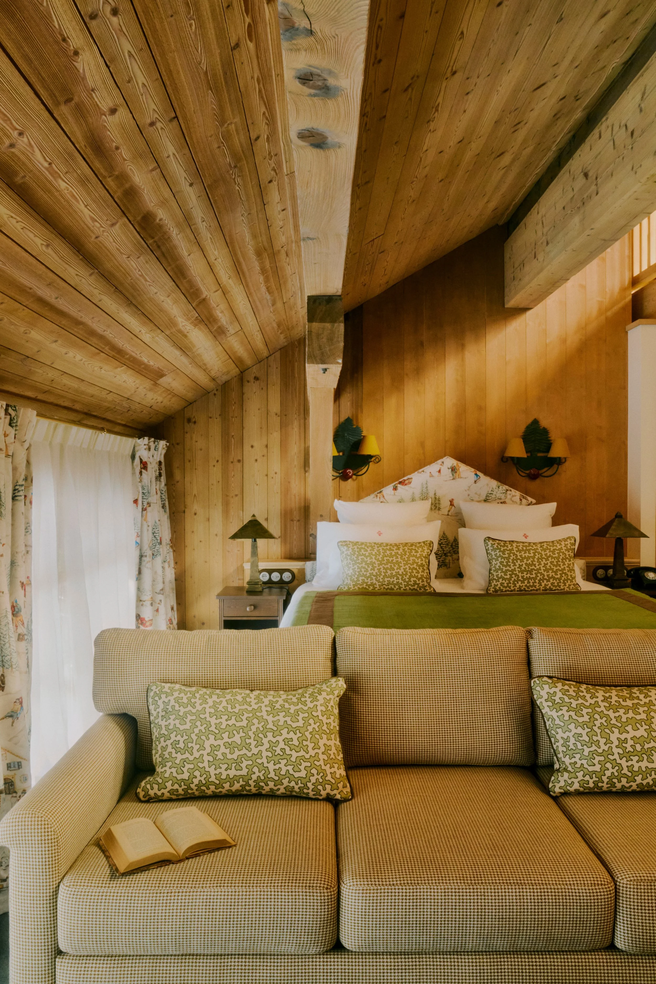 La plus vaste du chalet, pensée comme un décor de roman. Répartie sur deux niveaux, elle peut accueillir quatre personnes avec deux lits Queen ou quatre lits simples. Elle dispose d’un salon séparé et d’une grande salle de bain avec baignoire, douche, double vasque et WC séparé. Un refuge unique, pour vivre Megève dans toute sa splendeur.